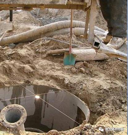 (h)清孔后泥浆比重、粘度等指标降低,’用空气吸泥机清孔,泥浆吸走后未及时补水,使孔内水位低于地下水位,清孔操作不当,供水管直接冲刷孔壁,清孔时间过久或清孔后停顿过久。