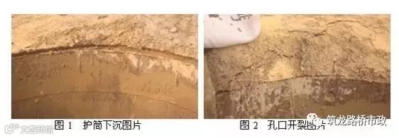 (c)护筒埋置太浅,下端孔口漏水、坍塌或孔口附近地面受水浸湿泡软,或钻机装置在护筒上,由于振动使孔口坍塌,扩展成较大坍孔