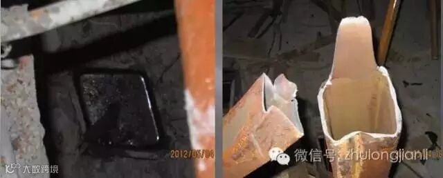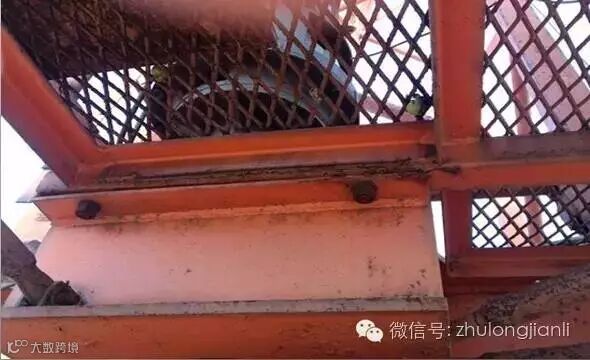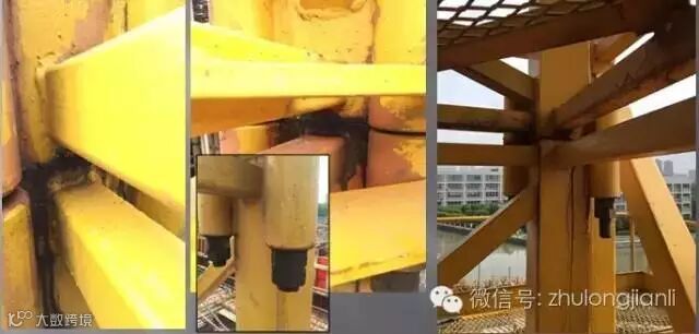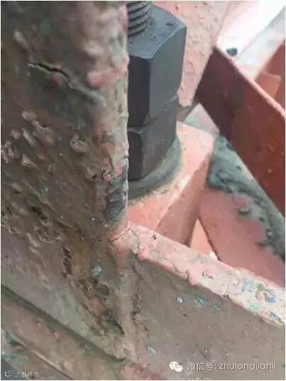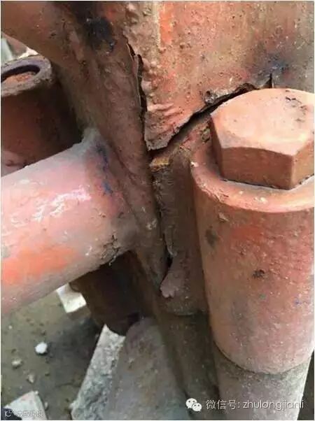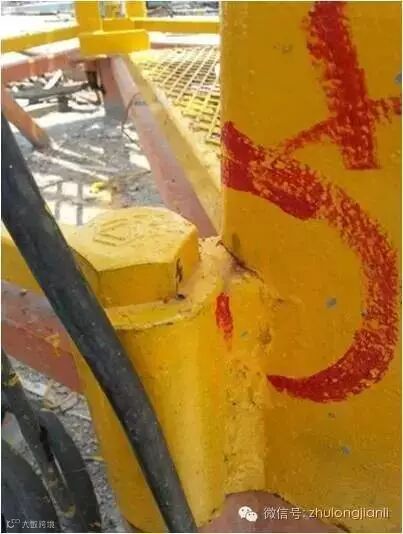 2、标准节直接安装于格构柱上,刚度差别悬殊,此处应力集中现象严重。日常疏于检查,该处位置不便进行日常检查。