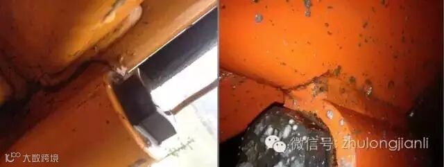 3、了解裂纹出现的位置,一般均在标准节下口从联接套上端面水平方向在母材上出现裂纹。
