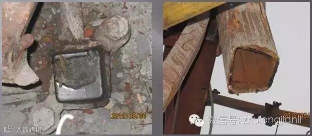 1、老旧塔机,无加强节,标准节连接套焊于方管的转角处,该转角处通常有硬化和减薄现象。