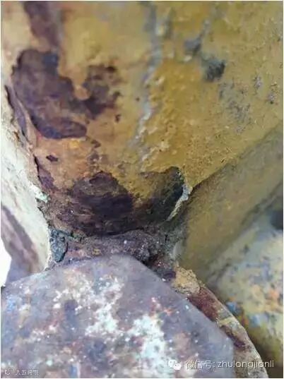 3、主弦杆内存有锈水,对内壁造成腐蚀,壁厚减小。