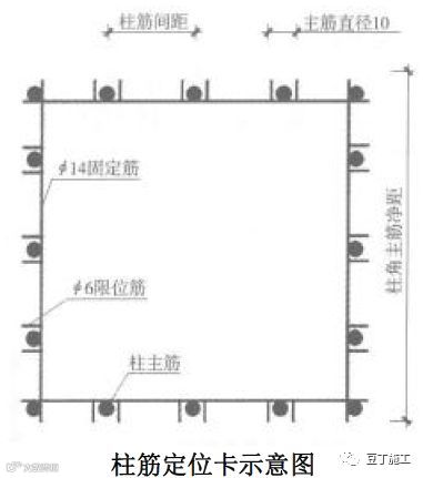 6、柱筋定位卡加工尺寸必须严格按照柱主筋间距及柱主筋直径加工,主筋允许偏差±5mm。严格控制定位卡安装位置,避免过高不牢靠及过低浇筑混凝土后不易取出。定位卡的表面清洁,无锈蚀、缺陷、油污。