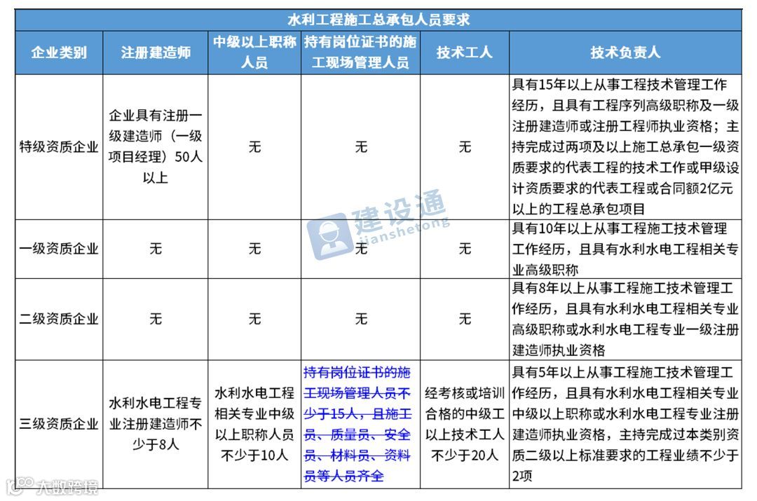 换句话说,并不是所有企业资质都不要求有建造师等企业人员。施工总承包三级资质企业对建造师等人员仍有要求,一级资质、二级资质企业保留技术负责人这一项要求,特级资质另有规定。