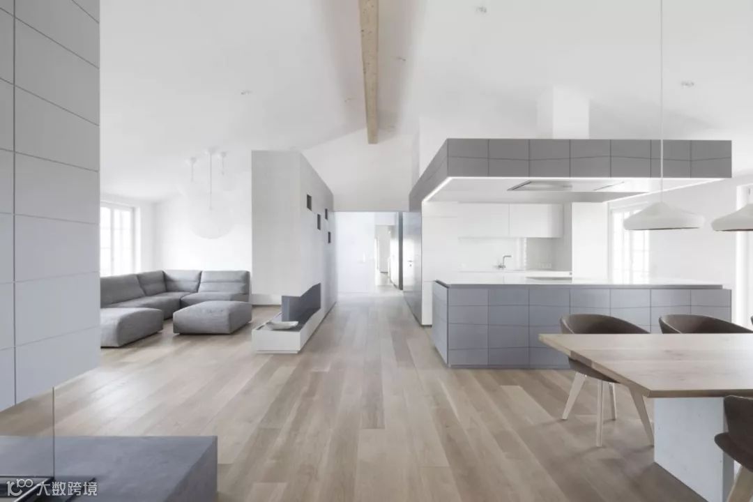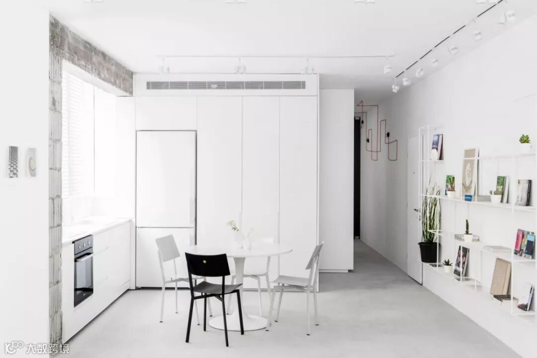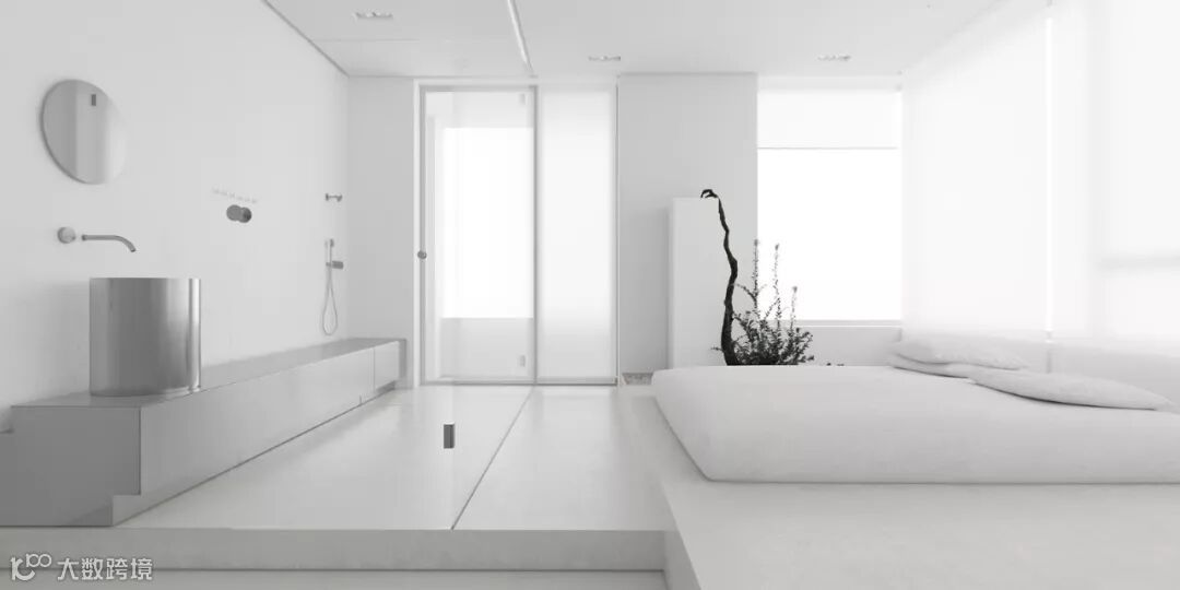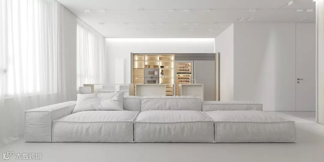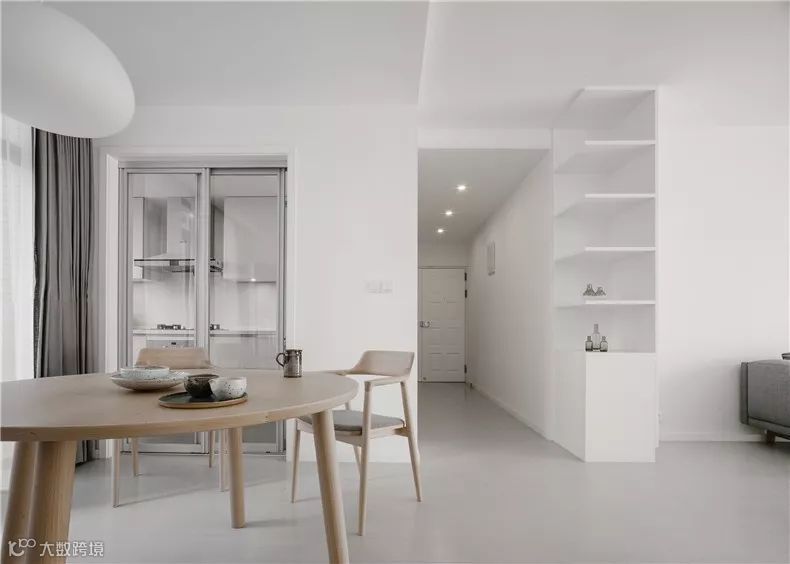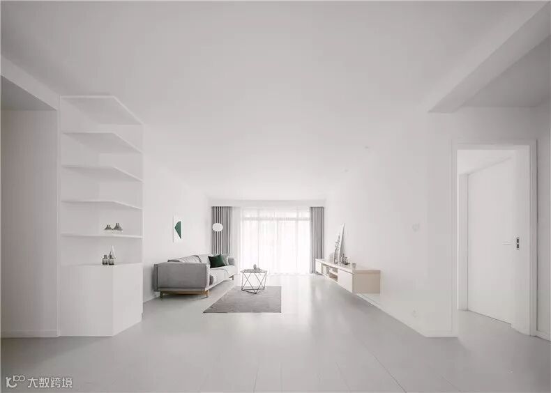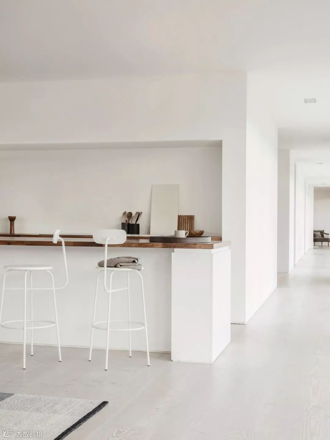 从色彩上来说,极简风格给人的直观印象,便是利用”白色“这一干净纯粹的色调来做大量铺陈,巧妙地奠定空间的简约基调。