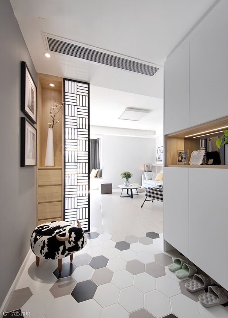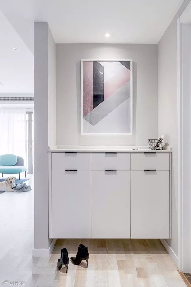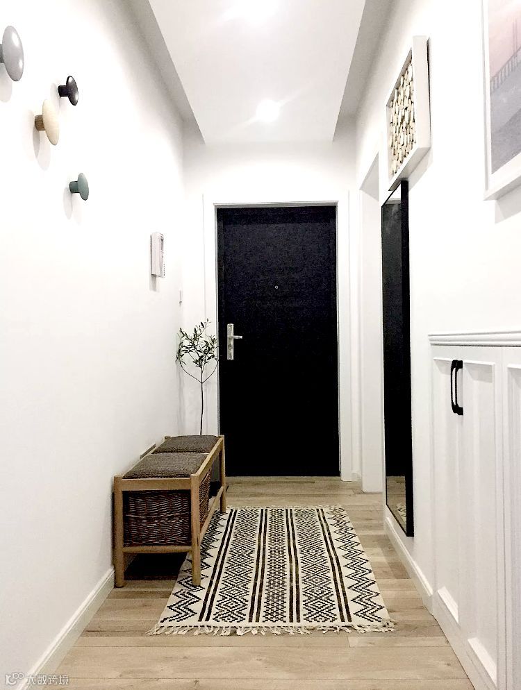 那么家里没有玄关的户型,要怎么补救?这个要分两种情况,如果进门空间比较紧凑,那就想方法放个鞋柜,实现收纳功能,如果进门空间充足,就可以设置一个隔断,实现玄关区的独立。