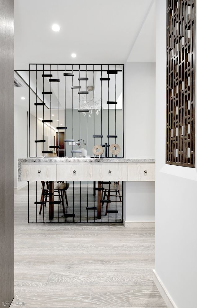 玄关处很少有空间通透的,而且由于玄关的面积小,所以平时看起来会有些局促黑暗,所以可以通过适当的吊顶来增加玄关的光线或者改善它的空间比例。