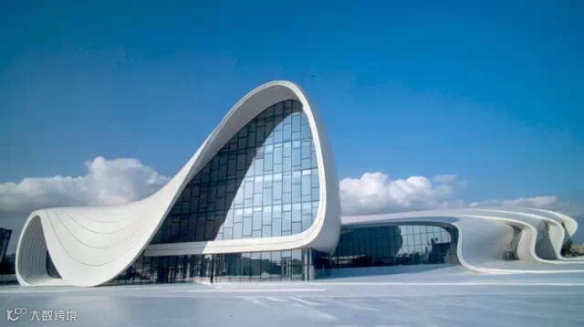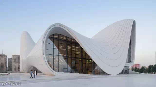 扎哈-哈迪德为阿塞拜疆首都巴库设计的阿利耶夫文化中心让人产生折叠和柔软线条感觉,它坐落在通往城市的主公路附近,外形类似芭蕾舞十分吸引人。