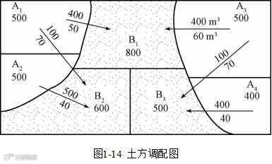 调配方案确定后,绘制土方调配图如图1-14所示。