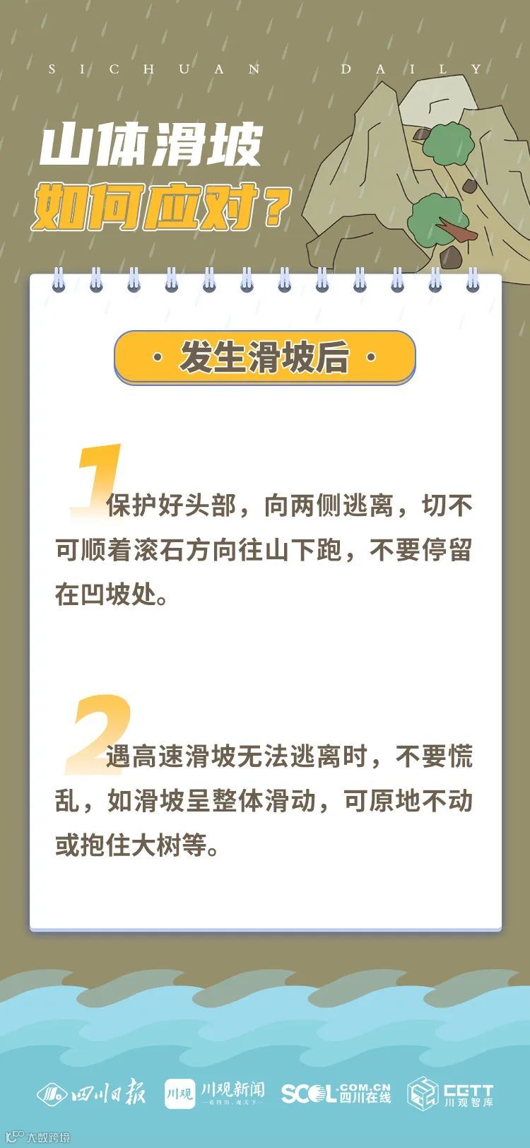 导读:5月1日四川正式进入汛期随着暴雨的增多山体滑坡、泥石流、洪水等灾害容易发生应对这些灾害,我们应该怎么做?