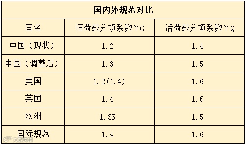 以前国家经济发展水平较低,对结构可靠度的投入受到了经济水平的制约,因此与国外规范相比,中国的分项系数的取值(调整前)一直低于国外的规范标准。