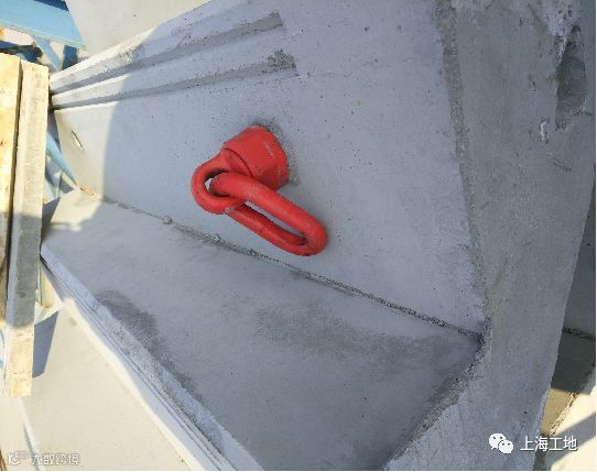 鸭嘴扣:预制墙吊具为鸭嘴扣,在预制墙体中预留吊钉,两者配合起吊使用,大幅度提高了吊装的速度,保证了吊装的安全性;采用专用测量的垂直度仪器,提升了预制墙体垂直度的精度。
