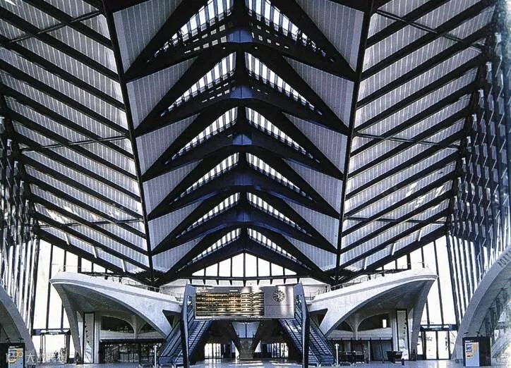 节点的连接方式同样对内部空间的塑造起着重要作用,节点的设计不只是局部设计,它对于建筑整体有着不可忽视的影响,如螺栓球节点展现出的是灵活轻盈的特性,焊接则更具力度,在汉堡航空港候机楼和日本关西国际机场的巨大钢管桁架中,采用直接连接的方式相贯焊接(如图21所示),没有多余的连接构件,节点体系干净利落,营造出开敞的大空间。