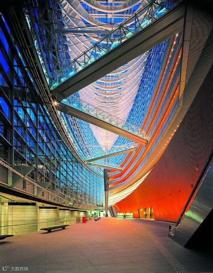 节点的艺术性一方面体现在其本身所展现出的力学美上,另一方面体现在节点对建筑表现形式与空间的塑造中。节点的设计可以丰富建筑的立面,构造节点在联系建筑的表皮与骨架时,会带来立面上的肌理,充分利用节点的形态,可以突出立面的表现形式。如东京国际会议中心的玻璃幕墙的节点设计,突出了简洁有力的立面形式(如图19所示)。