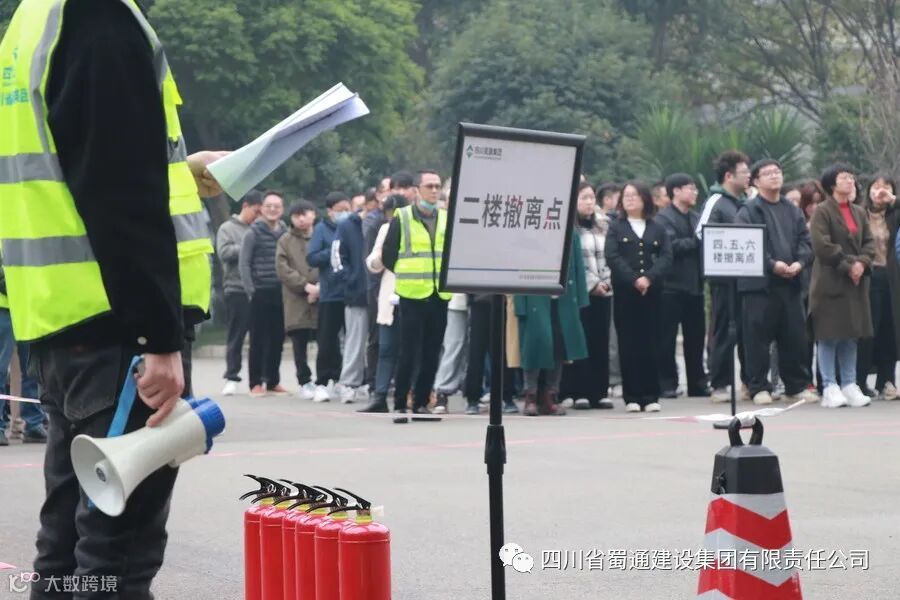 为有效检验蜀通建设集团办公园区应对突发火灾事故综合应急处置能力,进一步提高防灾减灾应对水平,提升全员消防安全意识,11月24日,公司在高朋大道办公园区组织约230名职工开展2023年度消防应急演练。