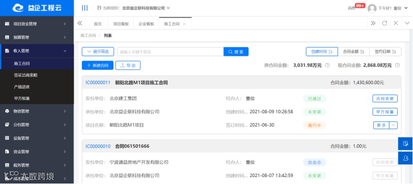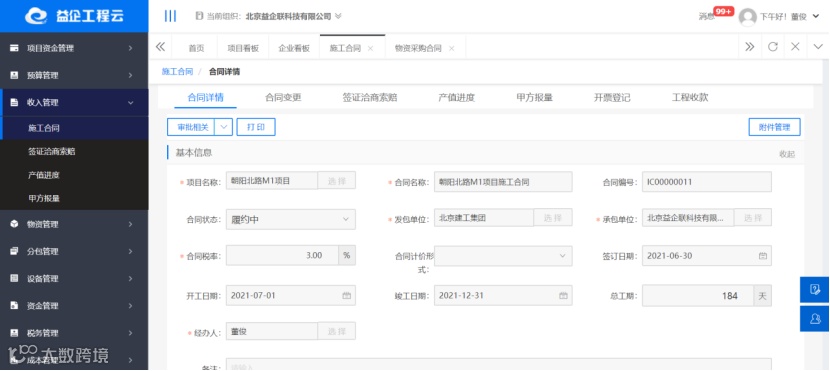 以资金管理为核心、以合同管理为主线,通过查询、统计分析和预警提醒等多种方法实现企业的业务管理,帮助企业把合同进度、合同变更、合同资料等管理得更有条理性和统筹性。