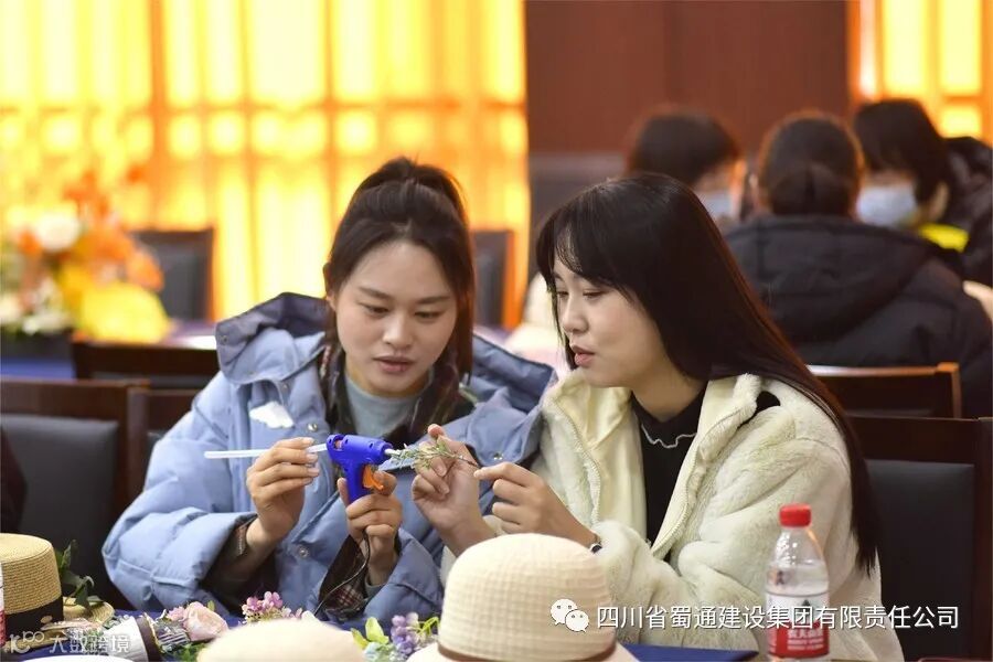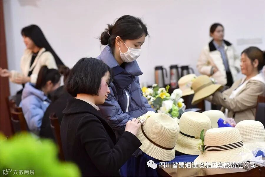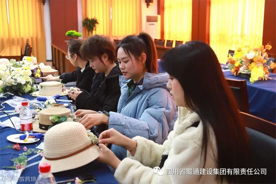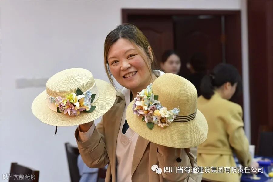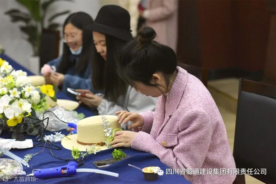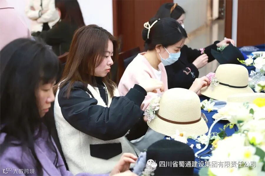 集手作体验、心灵治愈、审美培育于一体,既清新优雅,又阳光健康。缤纷绚烂的花朵绽放在帽子上,装饰了现场,也为女职工们的娇颜添彩。