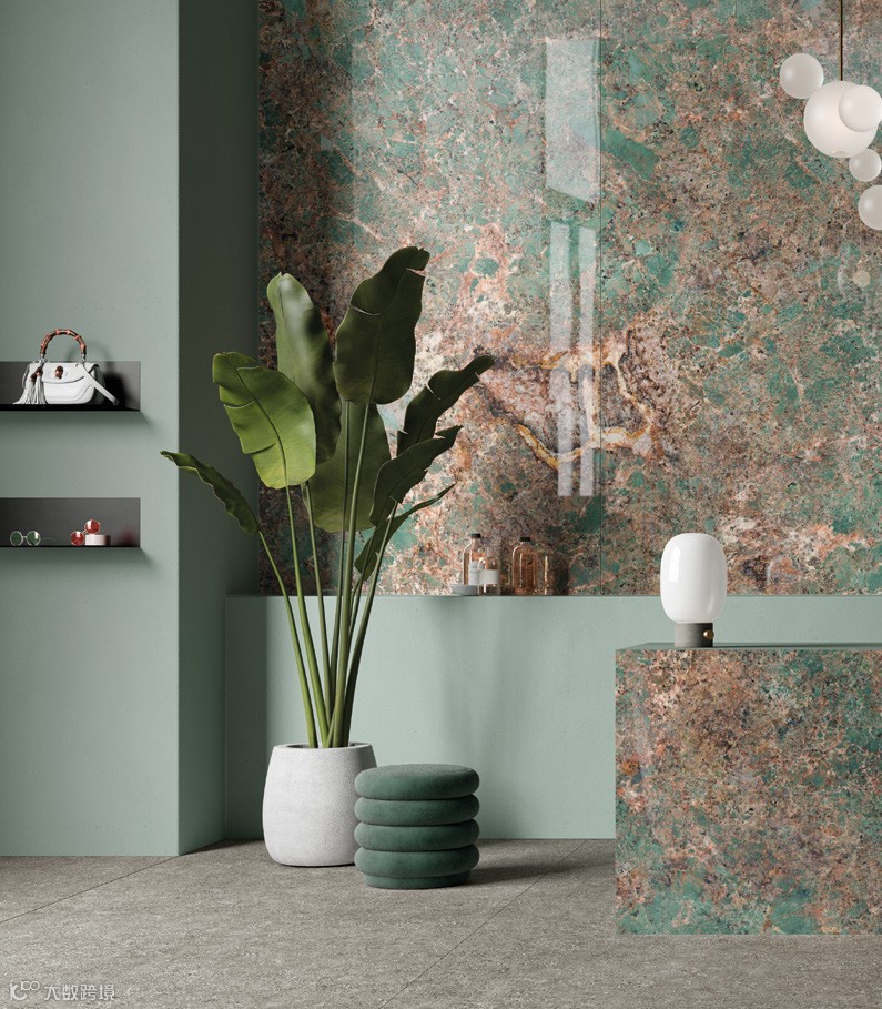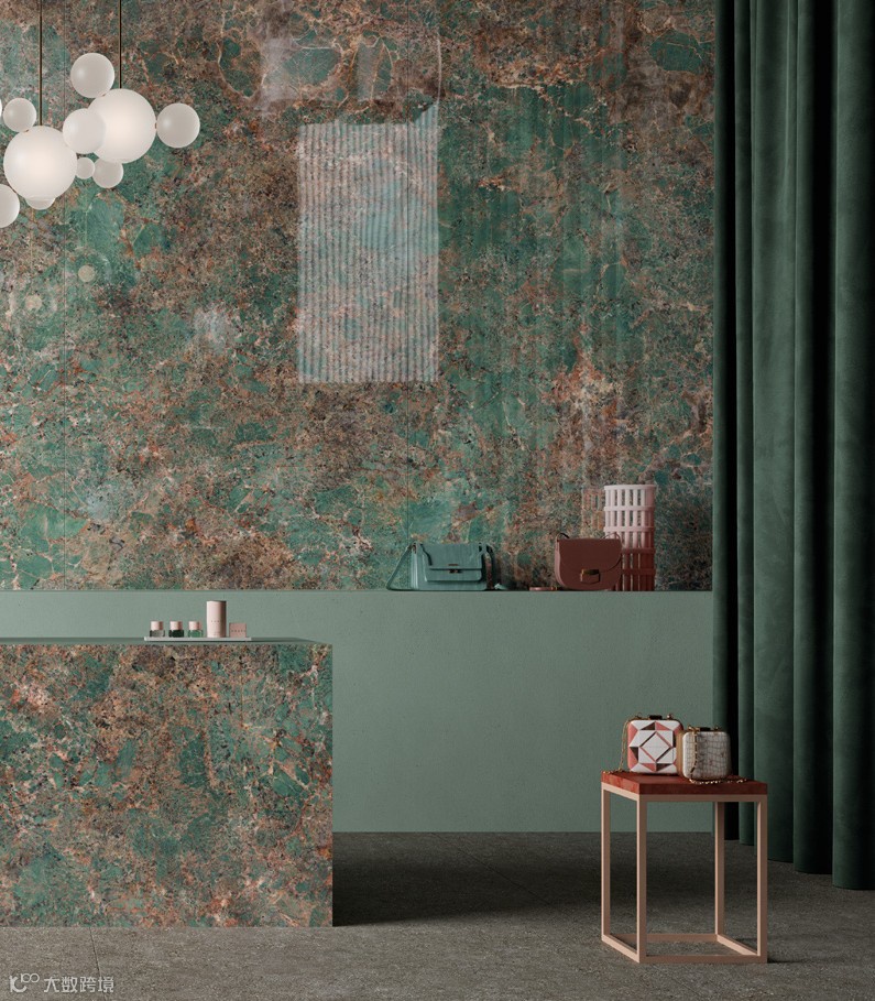 执大自然之笔,以绿色、环保、健康 为理念,SKI欧洲进口砖IRIS CERAMICA GROUP 大规格岩板,亚马逊绿的创作灵感便来源于此。