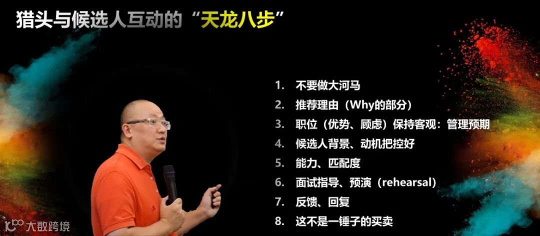 金老师站在企业与候选人的角度上审视猎头工作,指出猎头应做到知己知彼,百战不殆,与企业高层交流,学习精英大局观。