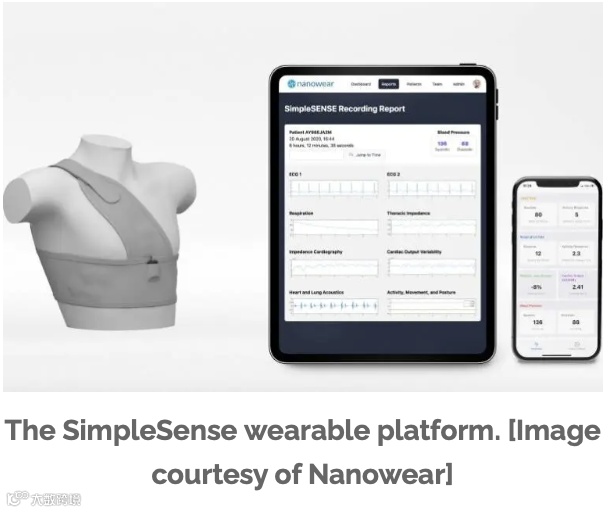 SimpleSense能够捕获并分析超过85个独特的生物标志物数据点,涵盖心脏、肺部、血液动力学和中心血管系统等多个方面。该平台能够提供连续的、与时间同步的生物测量数据。根据Nanowear的介绍,SimpleSense通过毫秒级的心肺评估聚合数据,协助医疗专业人员进行远程患者管理。借助其专有的纳米传感器和算法,SimpleSense希望成为首选的诊断工具,有望取代传统的血压测量带、电子听诊器、多通道心电图、血液动力学监测设备、脉搏血氧仪、肺功能测试设备和活动监测器。SimpleSense平台获得了FDA的批准,可用于家庭、医疗机构和临床研究。