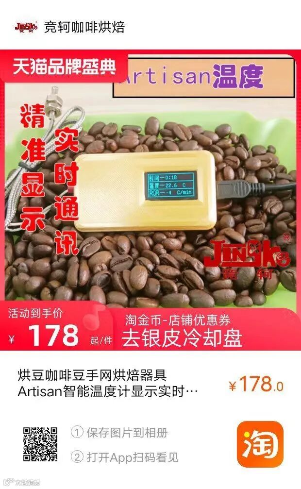 (插播一段广告,如果你们的烘焙机没有Artisan曲线显示功能或只是简单的手网烘焙想要显示和记录曲线,可以来考虑一下大魁最新研发的Artisan小金砖温度计,本身有显示的同时还可以与Artisan通讯实现烘焙曲线的显示和记录功能。性价比很高哦,远超市场上其它的同类产品。:D)备注 “来自咖啡烘焙工匠” 还可以享受免费的技术支持哦。扫描下方淘宝链接即可购买。