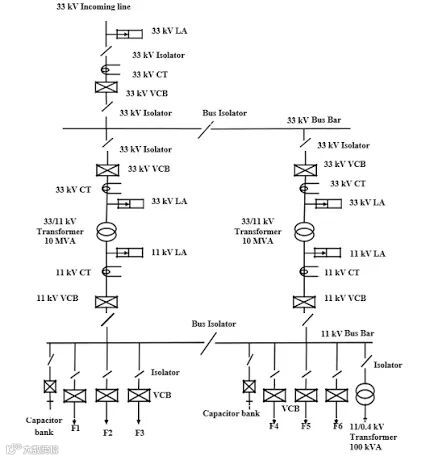图注:33 kV / 11 kV 变电站连接结构示意图