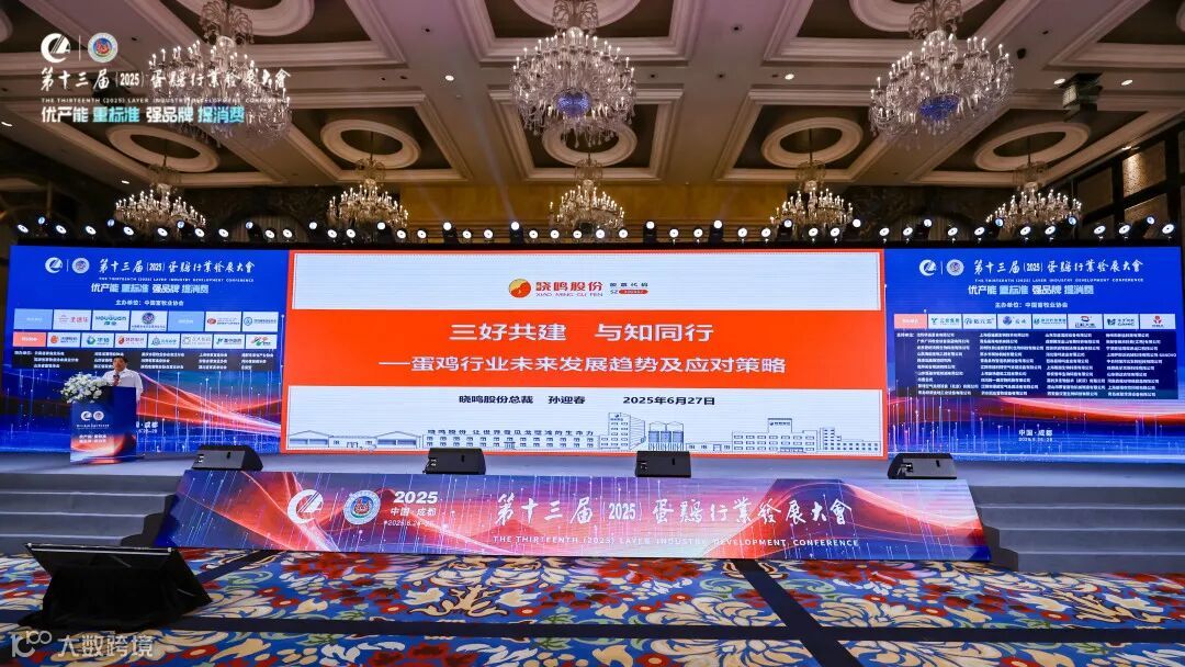 6月26日-28日,由中国畜牧业协会主办的第十三届(2025)蛋鸡行业发展大会在成都盛大召开。作为中国畜牧业协会蛋鸡业分会会长单位,晓鸣股份总裁孙迎春受邀出席会议,并发表《三好共建 与知同行——蛋鸡行业未来发展趋势及应对策略》主题报告。