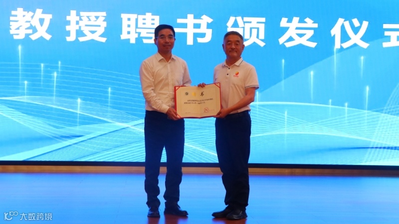 讲座前,李学斌为魏晓明颁发聘书,聘任魏晓明为宁夏大学客座教授。