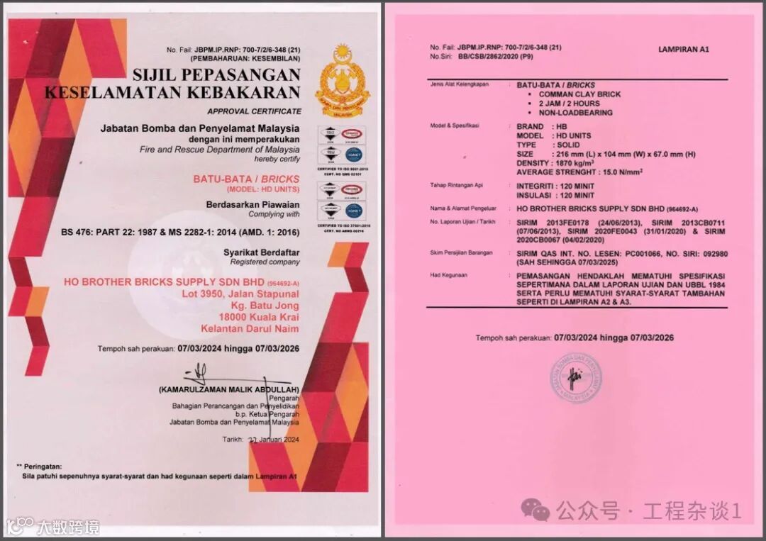 验收合格后,Bomba 颁发 消防合格证(Fire Certificate, FC),此证是建筑投入使用的关键文件。