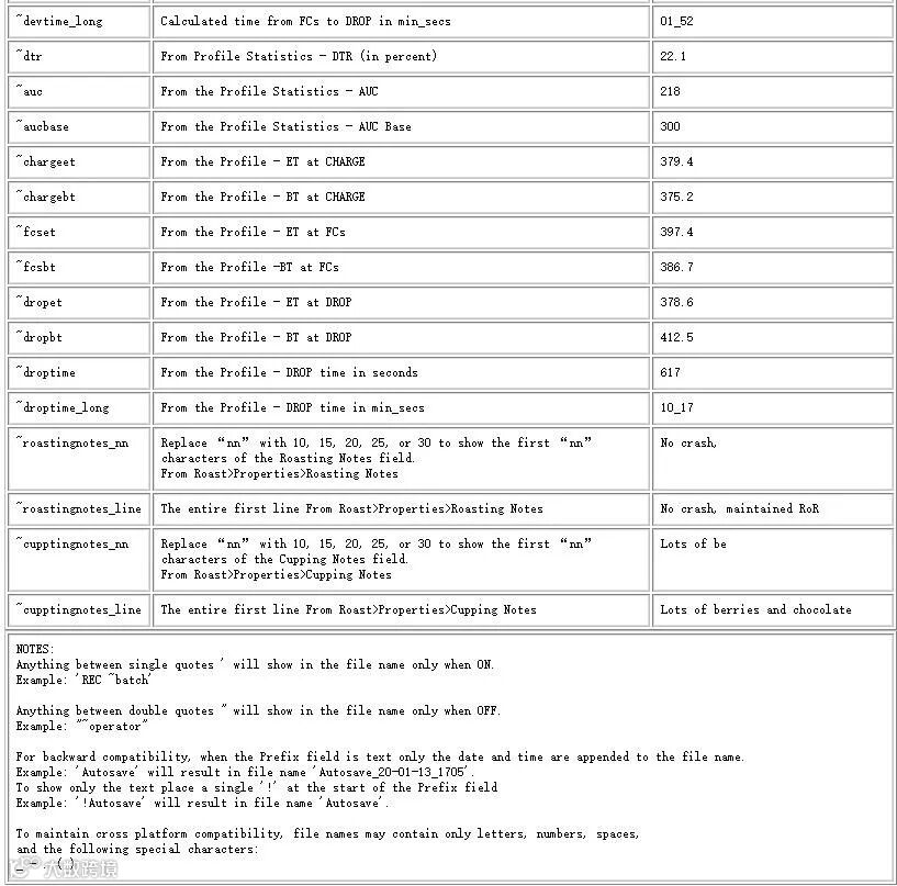 生产烘焙师对烘焙师的名字、机器名、鼓速、重量、咖啡名和日期感兴趣。还有体积、密度和湿度,但未展示。