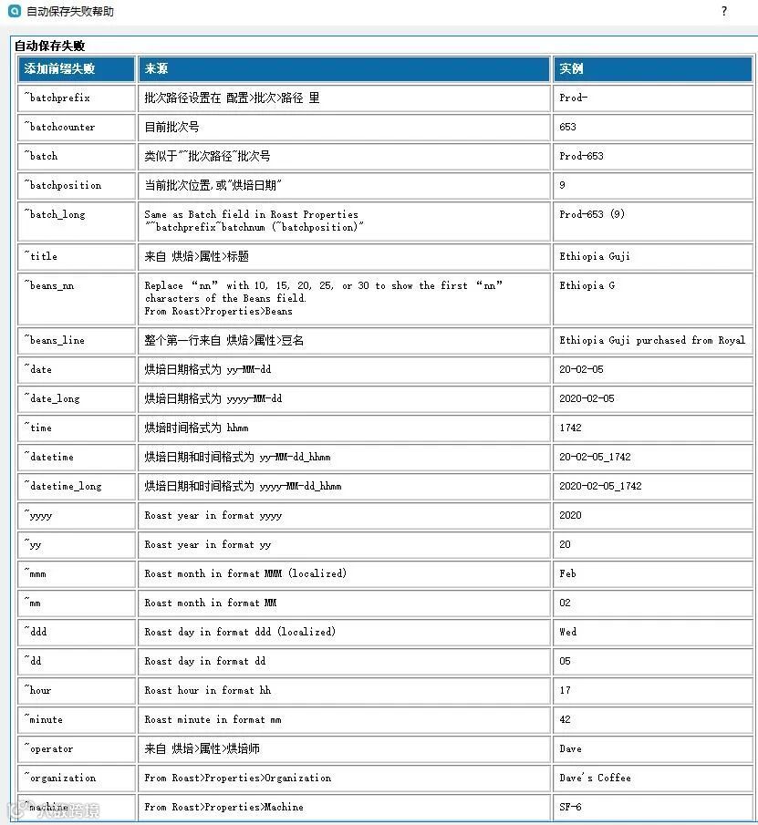 输出示例:CBB 663 Tanzania Mt.Kilimanjaro 2021-06-29 CBB是批前缀,663是批计数器,Tanzania Mt.Kilimanjaro是烘焙的标题,后面是日期。