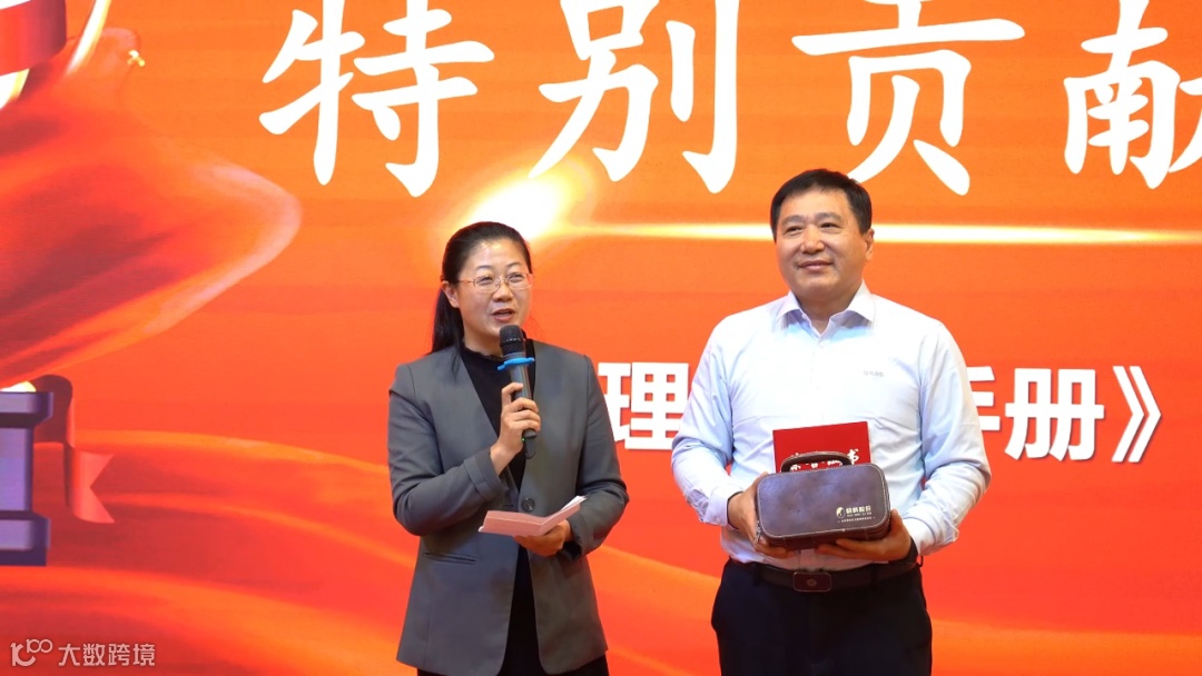 《管理学习手册》的内容既蕴含了前瞻性的思考,又为我们搭建了扎实的系统工作框架,它既是指南针又是操导书,每一位员工都能从中找到自己的工作指南。手册编纂过程中,孙总持匠心,竭心力,指导框架搭建和每一处细节的雕琢。推广学习时,孙总无私分享,引领大家冲破疑惑。为表达对孙总的诚挚感谢,以及对他毫无保留倾囊相授的深深感恩,人力资源部总监尤婷婷代表公司全员为孙总颁发特别贡献奖。
