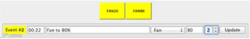 很酷!但是,您可能还想增加记录加热器功率或关闭风门的那一刻。为此,Artisan 提供了 4 种额外的事件类型,可以在烘焙过程中自由命名和记录。假设您想在烘焙过程中记录对风扇速度的修改,您将打开事件对话框(通过配置/事件菜单),将其中一种事件类型命名为“FAN”并在按钮选项卡中添加自定义按钮。这些按钮应该被分配一个称呼的名字(比方说“FAN20”和“FAN80”),选择正确的事件类型(在这种情况下为Fan)和一个可能的值。按钮还可以向连接的设备发送消息或调用程序。例如,在描述字段中添加相应的命令,当按钮按下时风扇的速度将设置为该按钮设置的值。