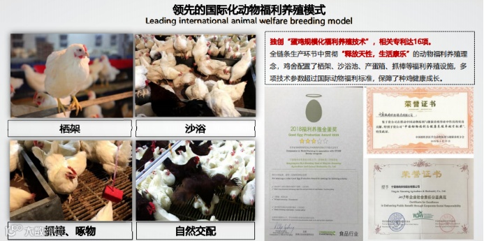 种鸡饲养在高床网架上,鸡群能够自由饮水、觅食、振翅、运动,采取自然本交模式繁育后代,最大限度地发挥了种鸡的优良性能和遗传潜力;鸡舍内通过设置多种组合方式的栖架,满足鸡群栖息的舒适性要求;鸡群可享受沙浴、爪棒、啄物等环境福利设施,达到缓解压力的目的,通过免疫减负、净化计划、健康体征评价等手段,解决鸡只的健康问题,同时通过《蛋鸡福利养殖管理技术规范》的地方标准,开展标准化福利养殖,确保种鸡环境、心理和身体健康。