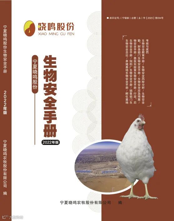 公司分别于2022年、2023年陆续修订完善《生物安全手册》,并制定了《生物安全标准操作规程》。两部手册对晓鸣股份生物安全体系的各个方面做了系统、全面、完整的制度规定和操作落地。