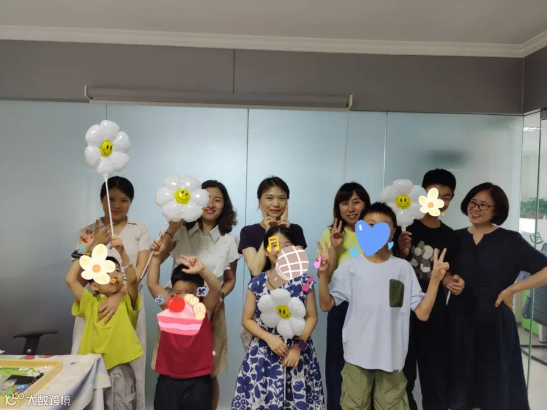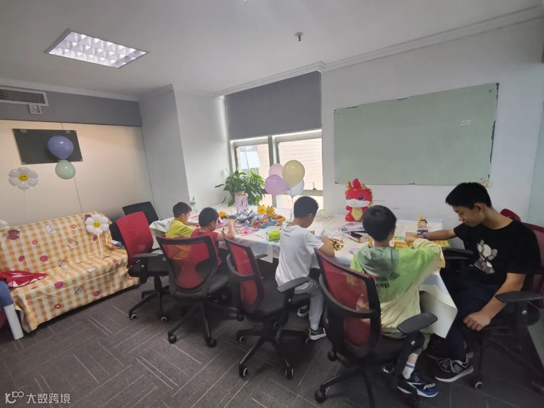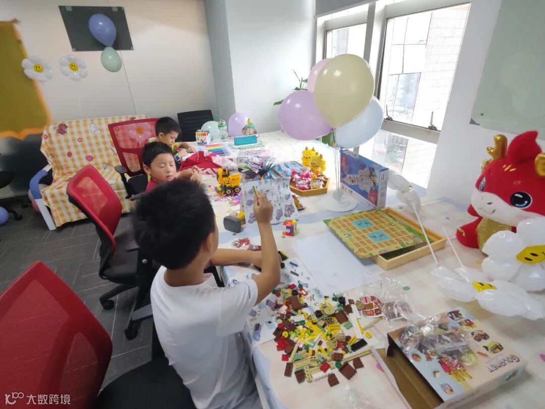 室里铺着花桌布的长桌前搭积木、画 彩虹,沙发上堆着软萌玩偶,连窗边的空气都飘着奶声奶气的“妈妈你看!” ——这里正在上演“职场与童真共融”暑期带娃计划的首站活动。