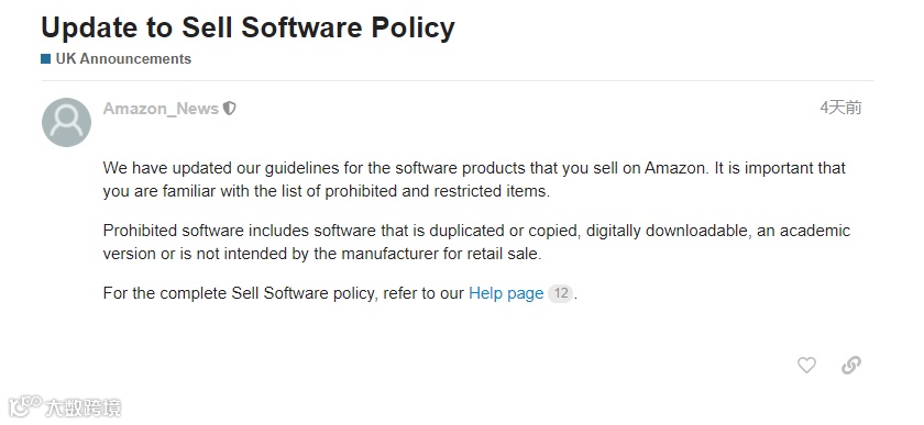 日前,亚马逊欧洲站发布公告称,将更新软件销售政策!