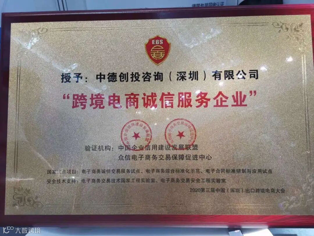在由众信中心联合翼果科技、海圈网、珊瑚荟、扩展集团举办,以“再破局·享商机·赚全球”为主题的第三届中国(深圳)出口跨境电商大会中,中德创投咨询(深圳)有限公司荣获“跨境电商诚信服务企业”称号。能被授予“跨境电商诚信服务企业”此称号,是我司的荣幸,也是对公司服务的认可及肯定,我司将戒骄戒躁继续努力,为跨境电商们提供更优质的服务!