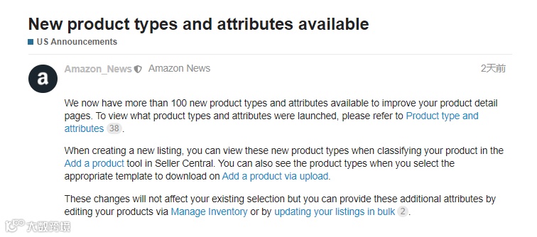 亚马逊表示:“我们有100多种新产品类型和属性可用于改善卖家的产品详细信息页面。”