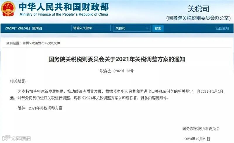 本月23日下午,国务院关税税则委员会发布关于2021年进口暂定税率等调整方案的通知,2021年将部分进口商品的最惠国税率、协定税率和暂定税率。