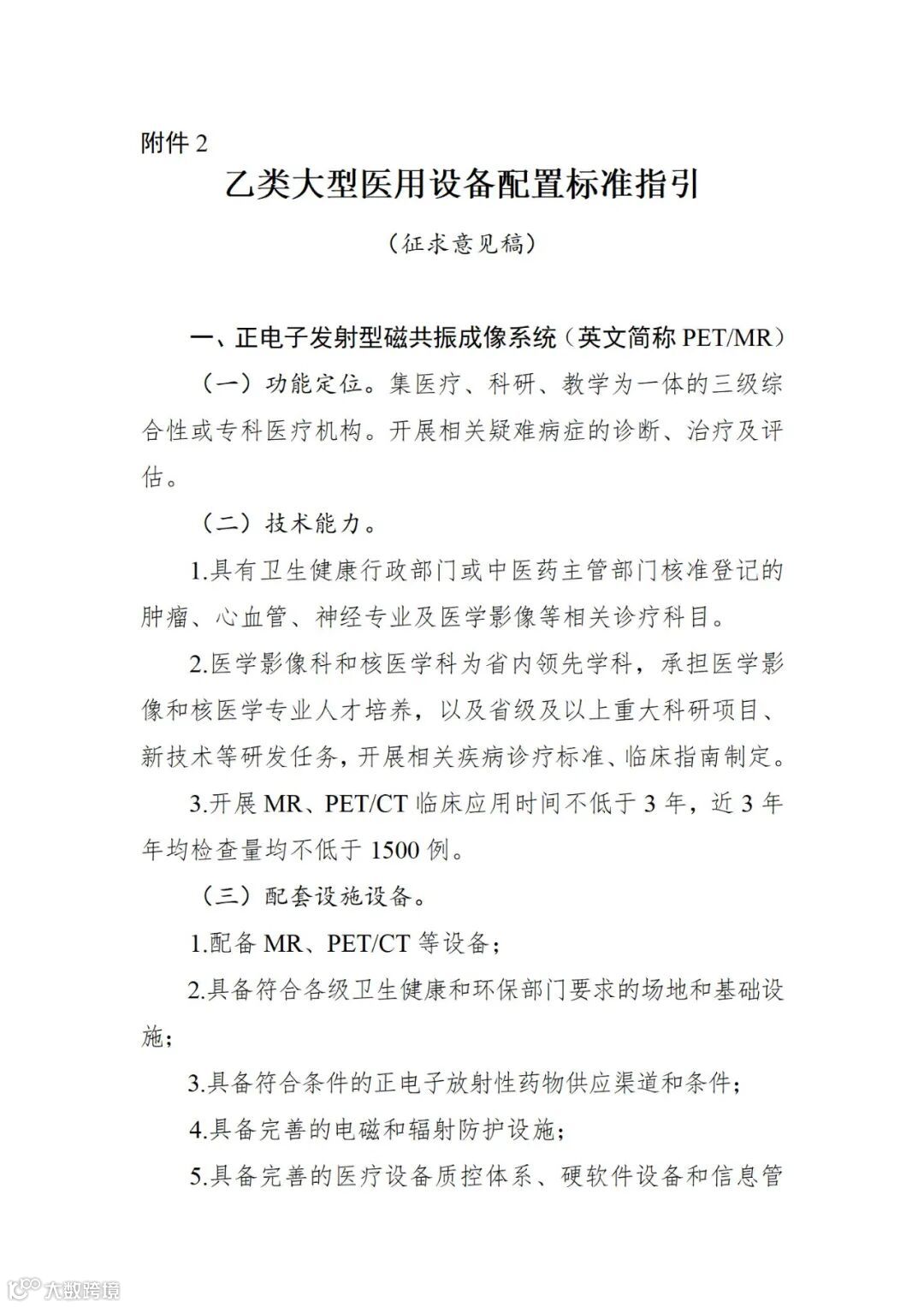 最新版《征求意见函》的发布,对于后续大型医用设备后续进院指导意义非凡。