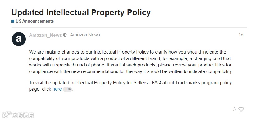 前段时间,亚马逊就针对侵权问题更新了关于知识产权的新规定: