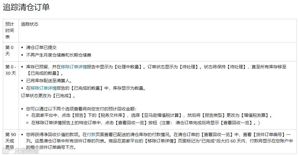 在提交清仓订单中符合条件的库存后,亚马逊将不再针对该库存收取月度仓储费和长期仓储费。