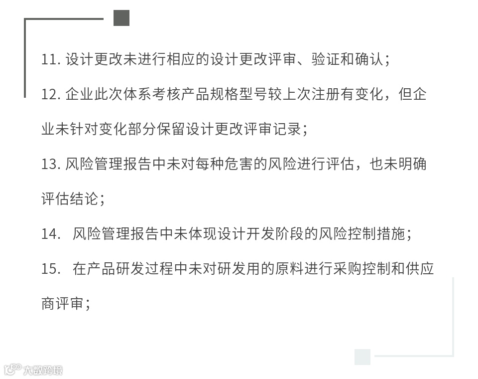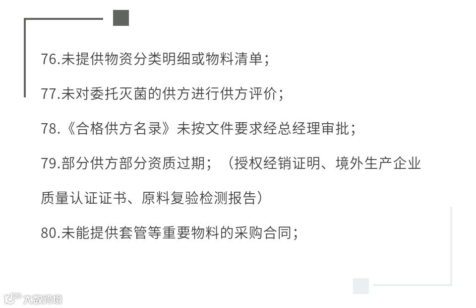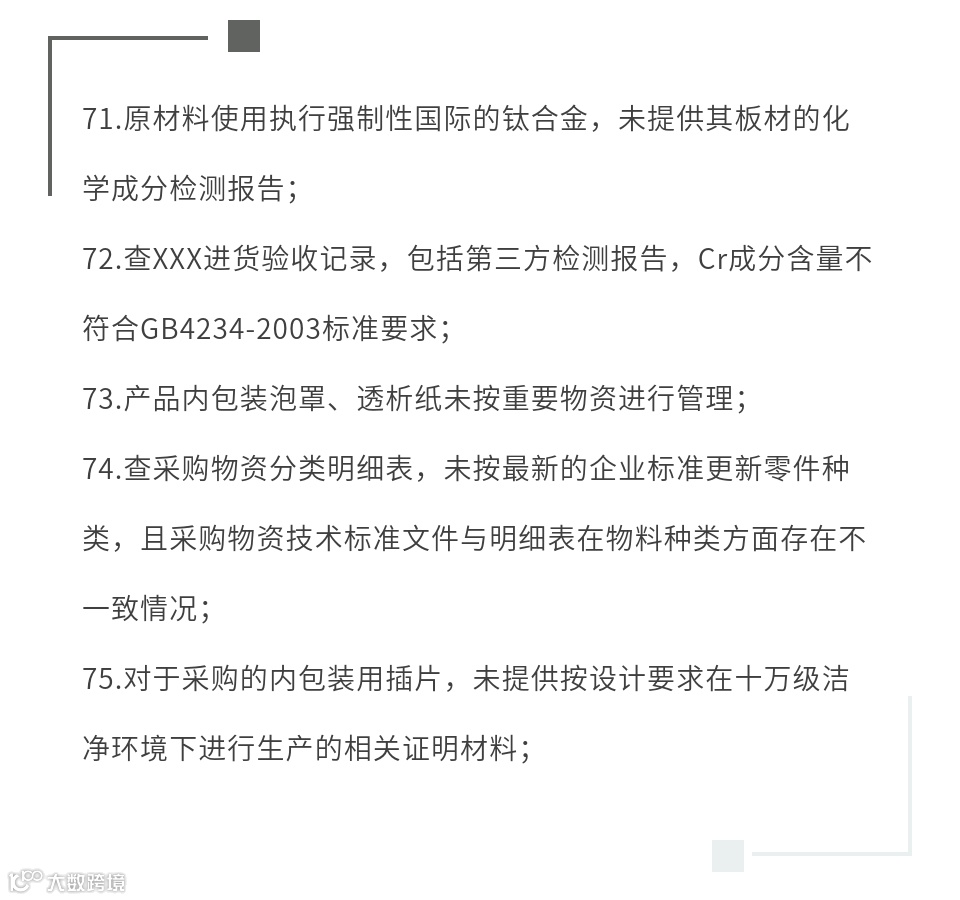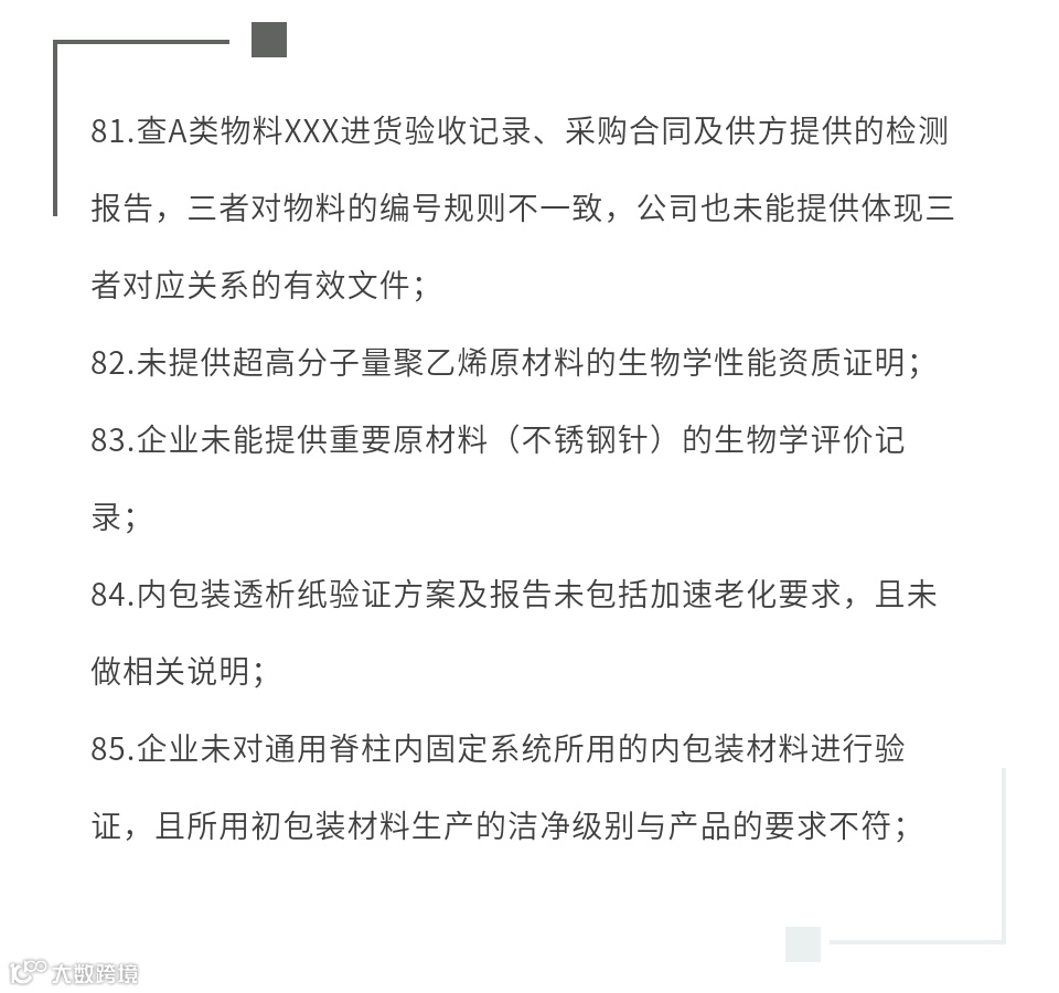 医疗器械注册质量管理体系核查是注册过程中的重要环节之一,其核心是通过对产品相关各项的核查,确认企业质量管理体系的建立与运行情况。本文列出了注册体系核查高频缺陷,供大家参考及自查。