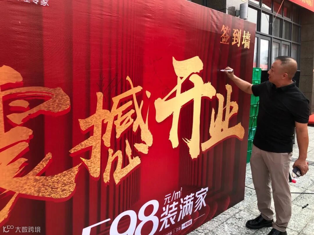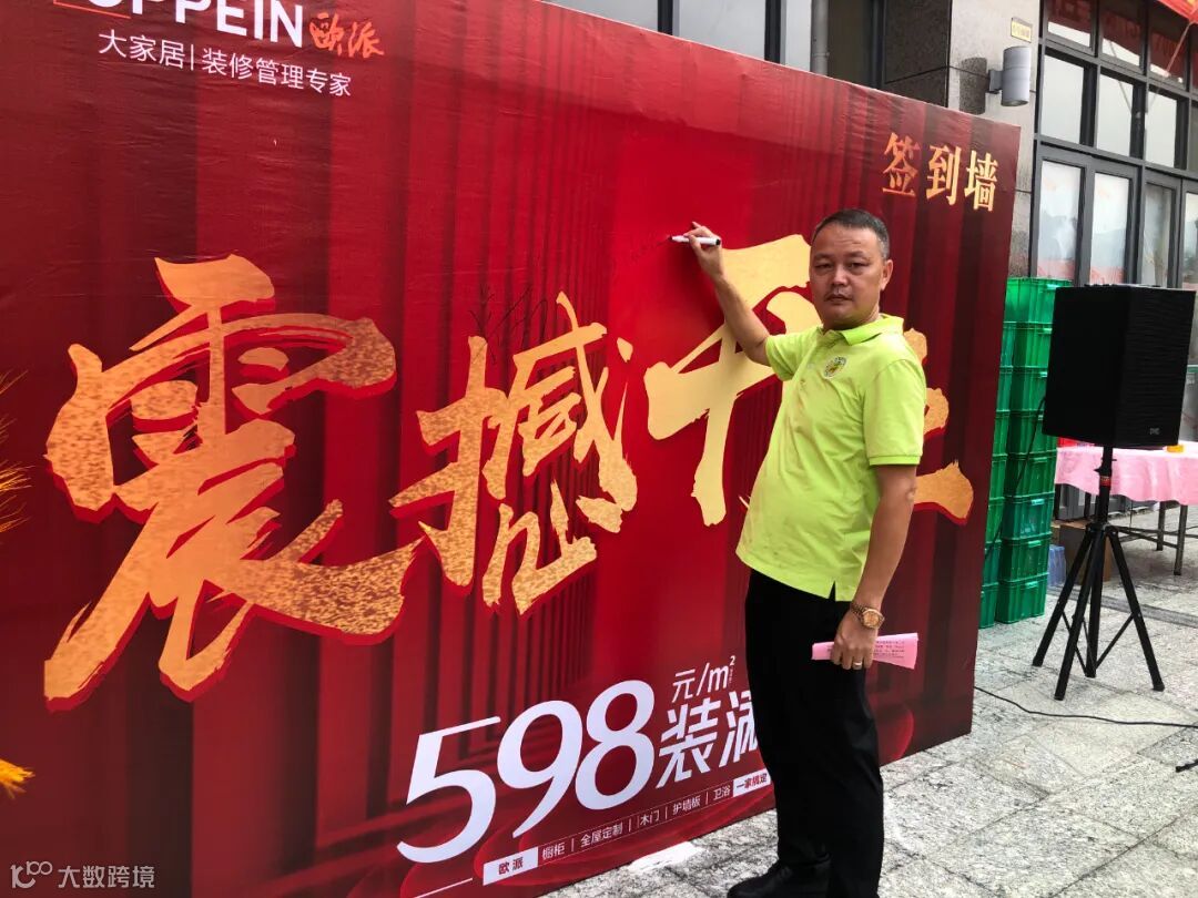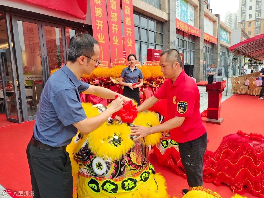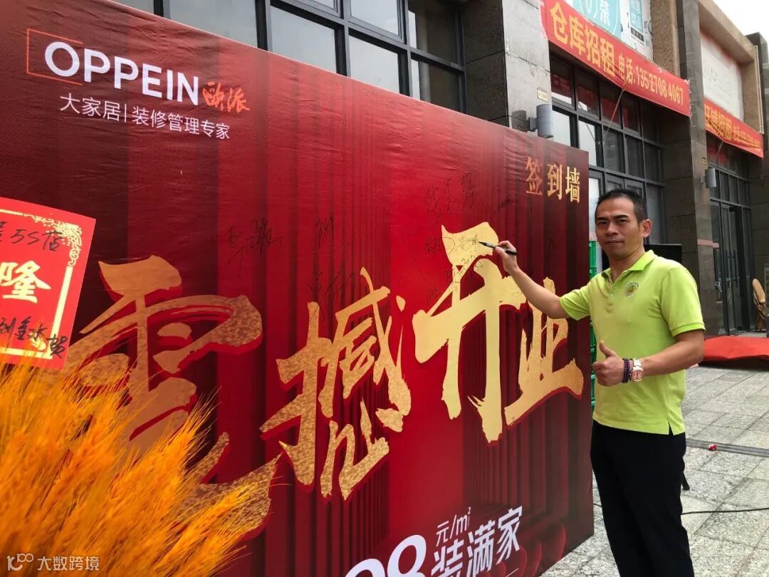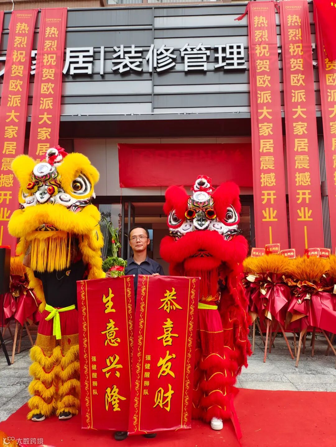 ▲送上开业字画,祝贺四会欧派大家居5S店开业大吉、生意兴隆、财源广进