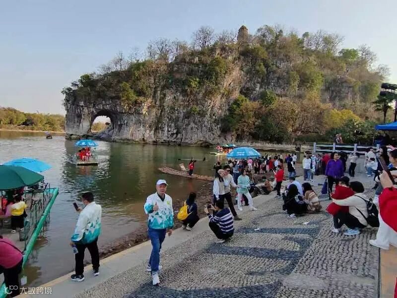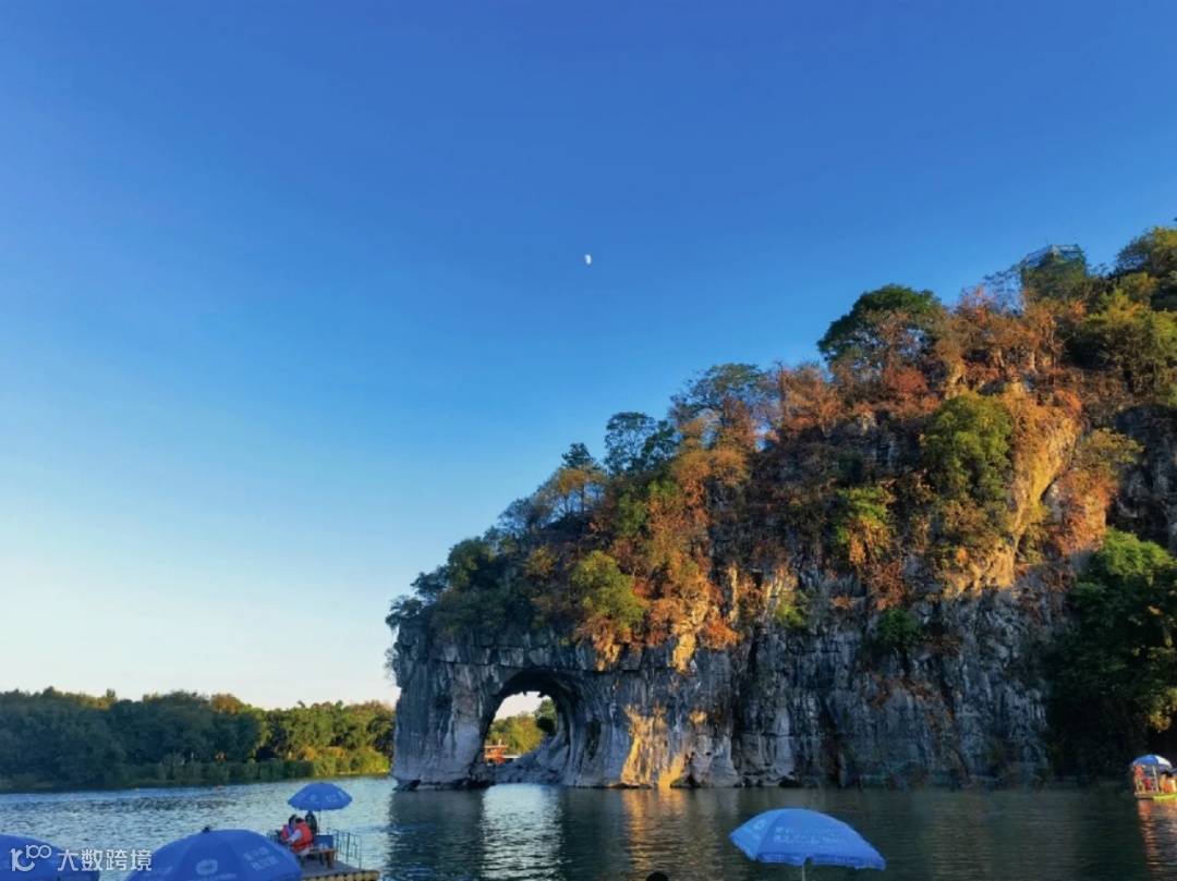 象鼻山以神奇著称。其神奇,首先是形神毕似,其次是在鼻腿之间造就一轮临水明月,构成“象山水月”奇景。
