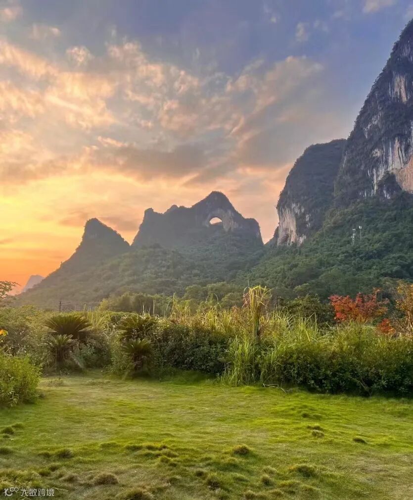 月亮山是阳朔境内的奇景,它在高田乡凤楼村边,高达380多米。因为山顶是有一个贯穿的大洞,好像一轮皓月,高而明亮,所以人们叫它明月峰,俗称月亮山。
