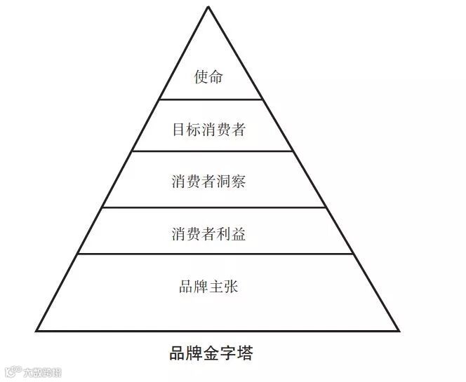 首先,我们应该先弄清一个完整的、最简单的“品牌金字塔”应该包含哪些元素,它们自上而下分别为: