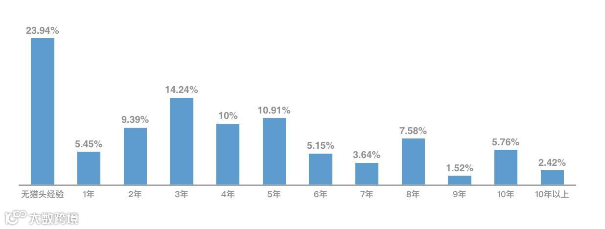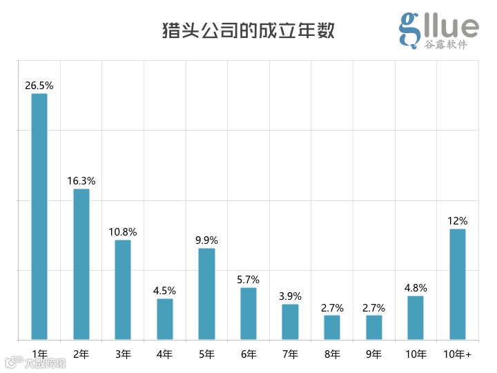 超过1/4的猎企成立时长仅1年。10年以上历史的猎头公司约占1成。