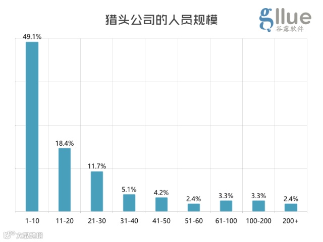 10人或10人以下的猎头公司占据了约半数的市场份额,能稳定在100人以上规模的猎头公司任然属于市场上的绝对少数。规模越大,对于成本的控制,人员的管理,业绩的提升所涉及的复杂程度越高,也对管理者所需具有的素质提出了越高的要求。